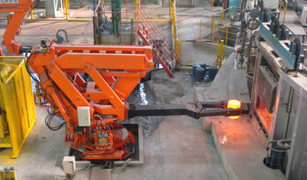 海德馬克致力于為鑄造、鍛造、熱處理行業(yè)客戶提供貼合需求的鍛造行業(yè)解決方案,為滿足客戶需求,自主研發(fā)、設計、制造了全液壓重載機器人,完成車間的工件的裝出爐、工件的運輸、模鍛壓機的上下料等操作。